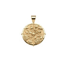 - Coin pendant made of sterling silver dipped in 14k gold, measuring 0.975" in diameter.