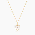 14k gold plated carved mother of pearl heart charm with cubic zirconia on 1.2mm Rae cable chain. Adjustable between 16-18".