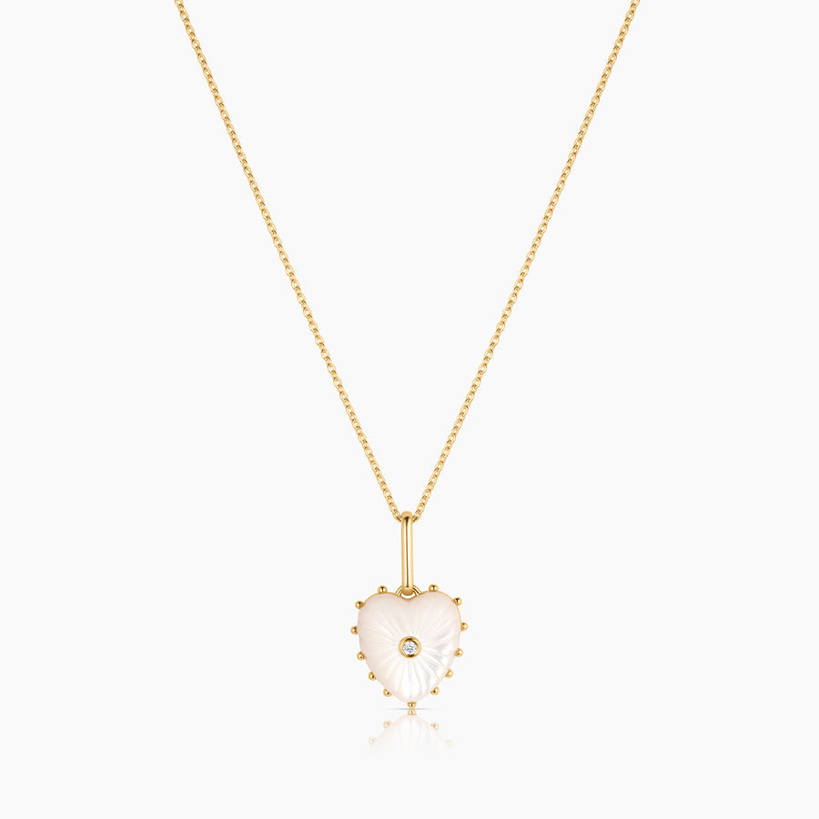She's Malene's baby sister, a smaller hand-carved mother of pearl heart with a sparkling center stone. A favorite for gifting and layering.