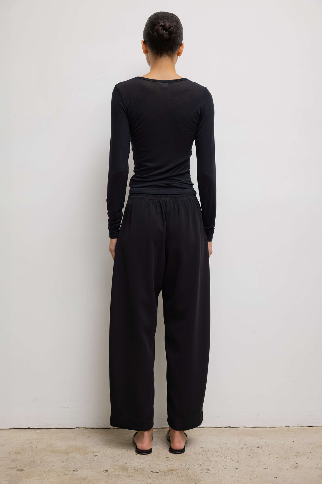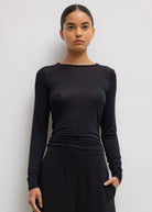 Cut in our air-light Julien cashmere modal blend, the Julien Slim Fit Long Sleeve is an essential wardrobe piece. This tee features a clean crew neckline, fitted long sleeves and a fitted full length.