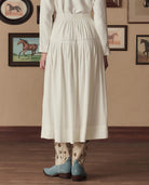 Cut from a fluid, drapey twill, the Western Embroidered Highland Skirt features a dropped waist with soft pleating and a flowing hem for effortless movement. An elastic waistband offers ease and comfort, while a full front placket is finished with classic Western pearl snaps. Ornate Western embroidery cascades down the front panel, adding a graphic, heritage-inspired touch. This season, the skirt is made in collaboration with Stetson, whose legacy of authentic craftsmanship has defined the spirit of the West since 1865.