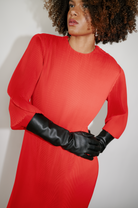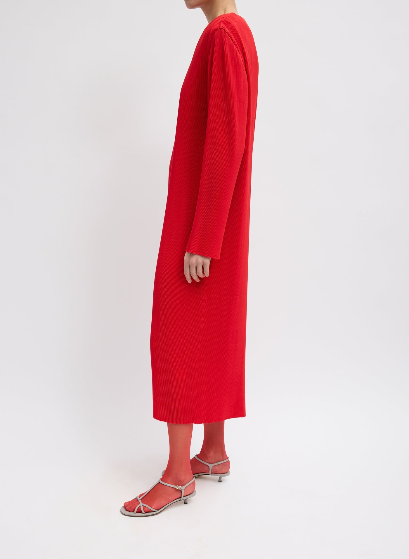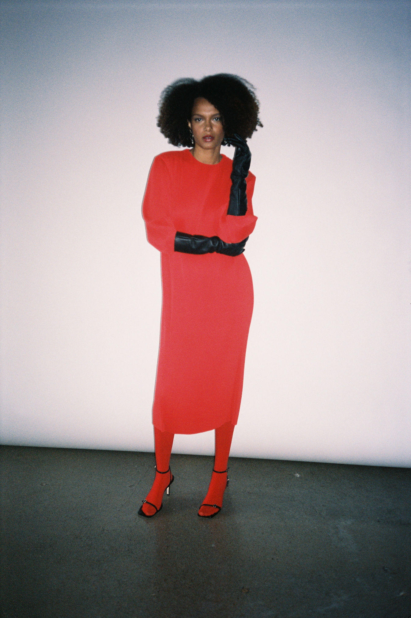 An exploration of texture and movement. The Plissé Midi Dress is cut in custom pleating on an ultra light stretch base with a softly wrinkled finish that is equal parts ease and intrigue. Designed with an exaggerated shoulder and clean shift shape, the pleats catch the light and create dimension with every step. It adapts to mood and setting. Ground with monochromatic hosiery and a heel for polish, or style with the Harry Boot for nonchalant ease.
