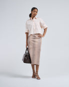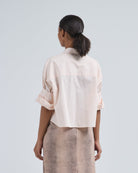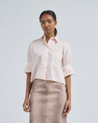Cropped, short sleeved button down in cotton poplin. Boxy silhouette. Complete with a chest patch pocket, button up placket, spread collar, and our signature double roll button cuffs.