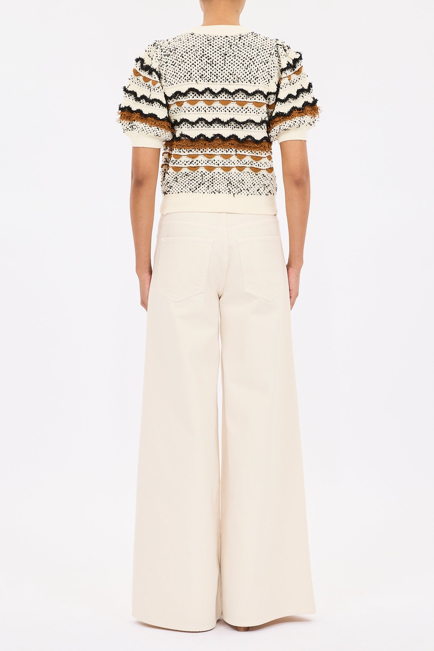 Elevate your everyday with this charming knit top featuring statement puff sleeves that add instant personality to any outfit. The delicate ruffle stripe detail brings a whimsical touch, perfect for mixing with your favorite jeans or layering under a blazer. Crafted with a soft, breathable knit fabric, it's the kind of piece that feels as good as it looks. Whether you're heading to brunch or a casual day out, this top delivers effortless style with a playful edge.