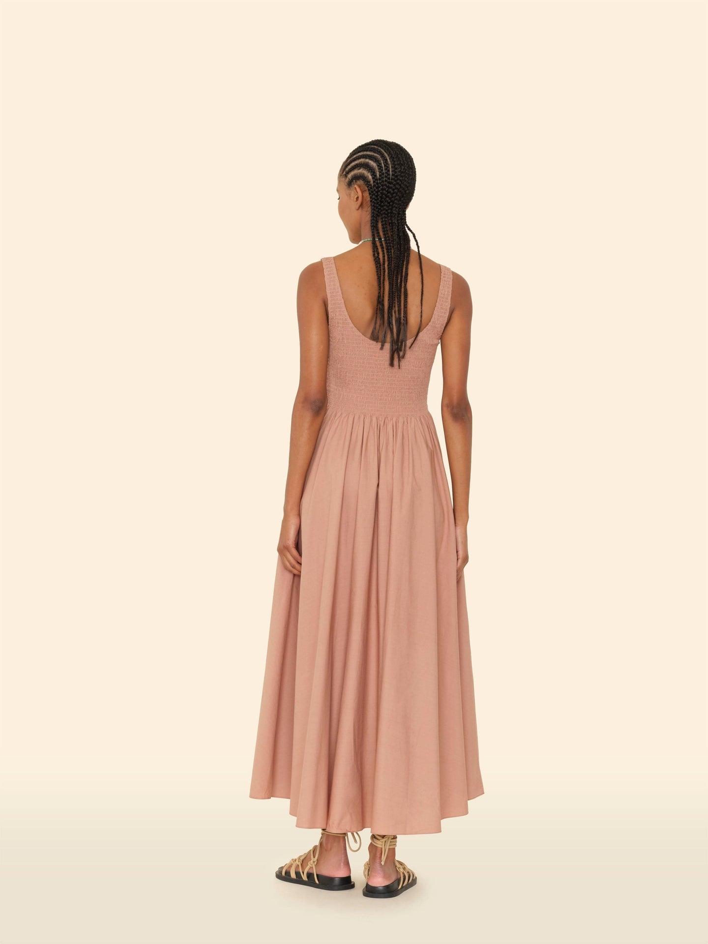 Pretty Please. Florence is made in our new crisp paper poplin with a refined feel. This sleeveless midi sundress features a square neck, smocked bodice, and side seam pockets.