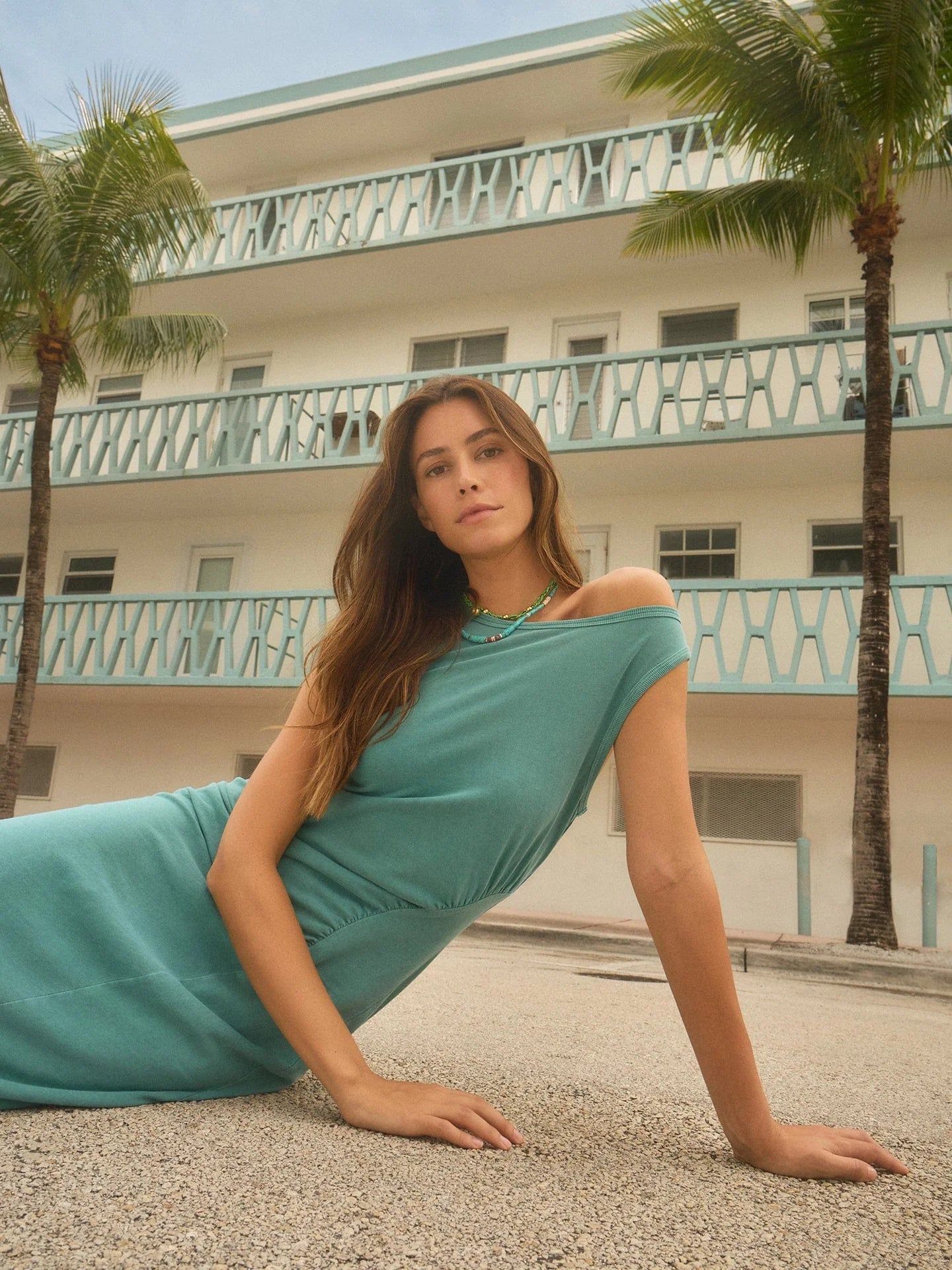 Back to Basics. Noella is new this season in ultra-soft cotton jersey. Noella is a sleeveless midi dress with a round neck and ruching.