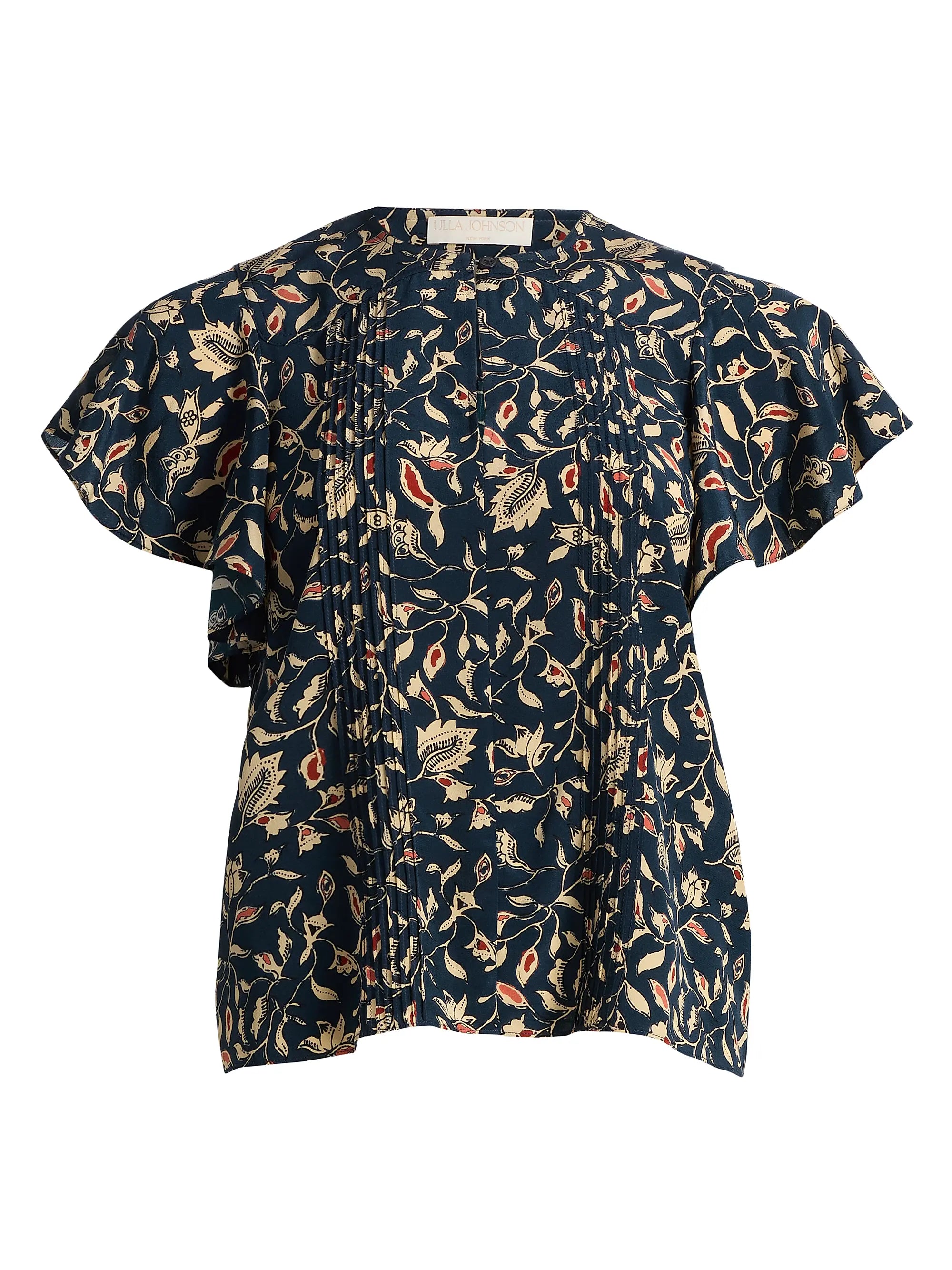 The Adoni top from Ulla Johnson is crafted of silk and designed with a floral print with pintuck detailing.