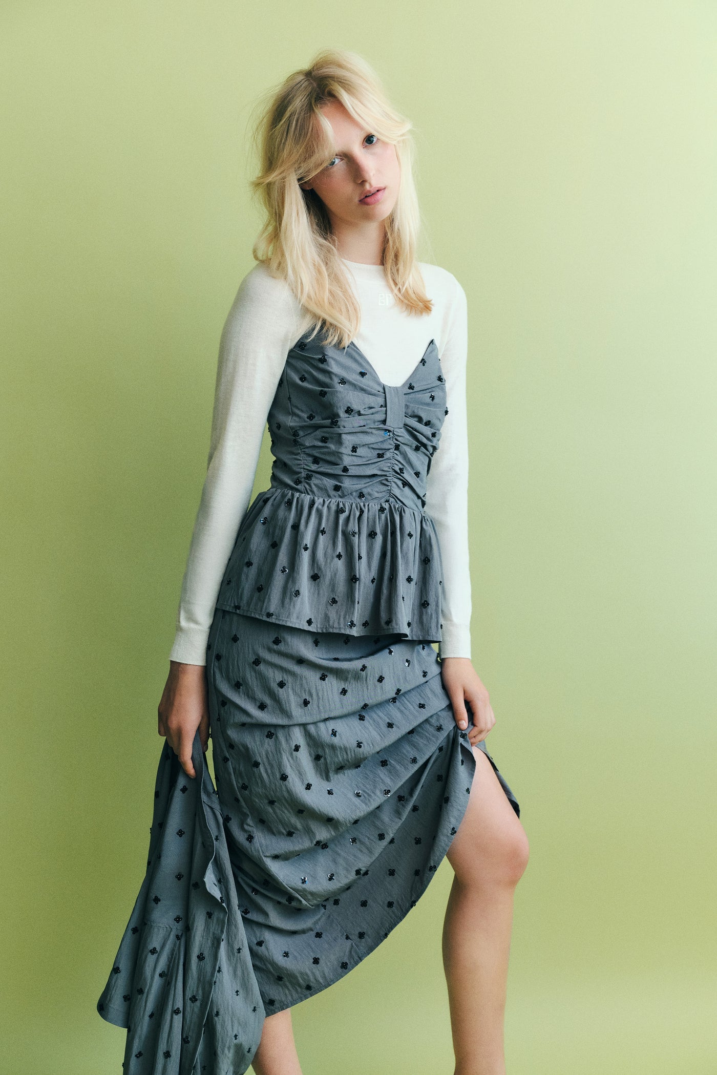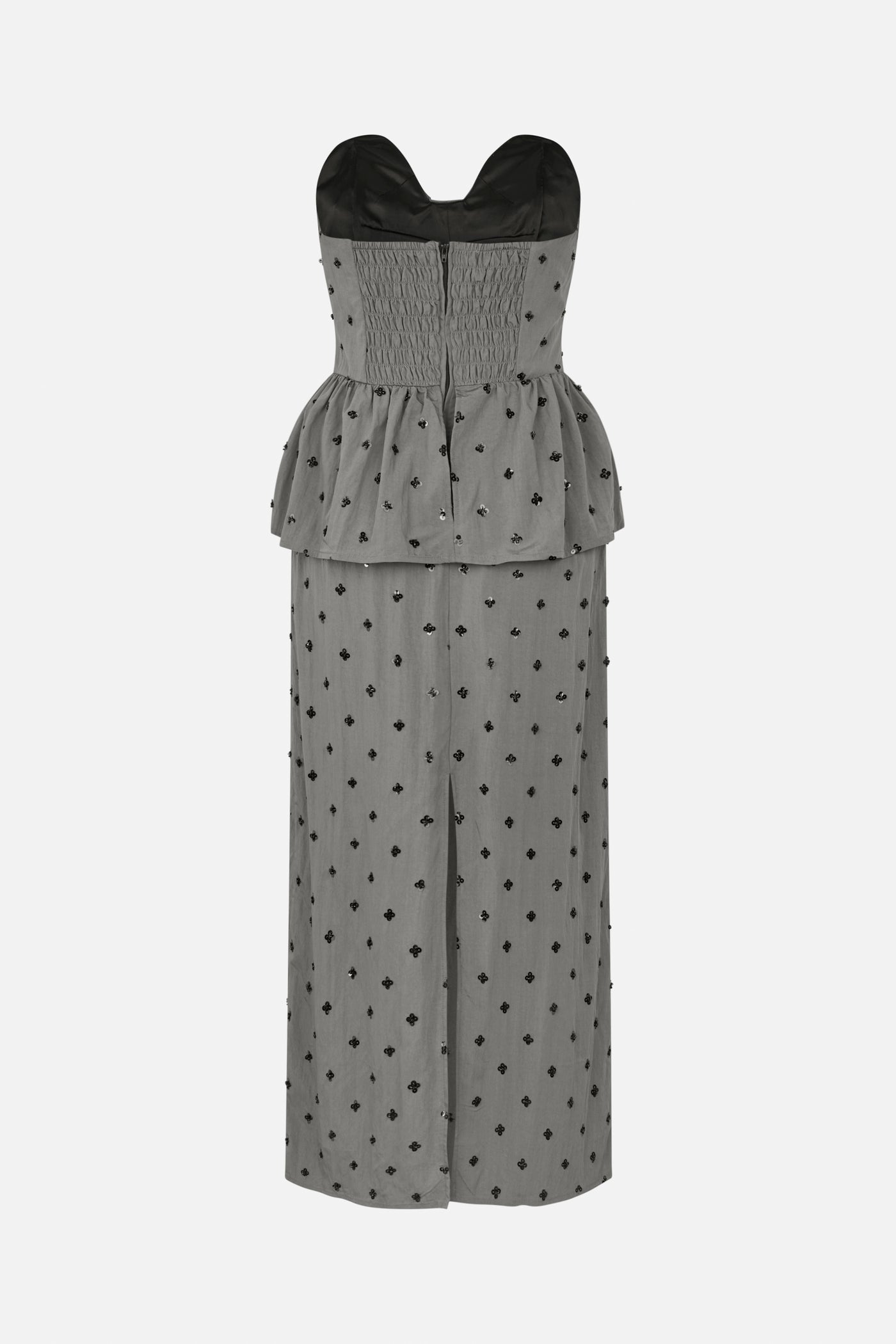 The Amilie Dress is a statement piece that brings confidence to your look. The sleeveless dress has a fitted body, sweetheart neckline and flower-shaped sequins for an elegant feel. A layered mini skirt adds volume to the midi-length silhouette, while shirring at the back ensures a snug and comfortable fit.