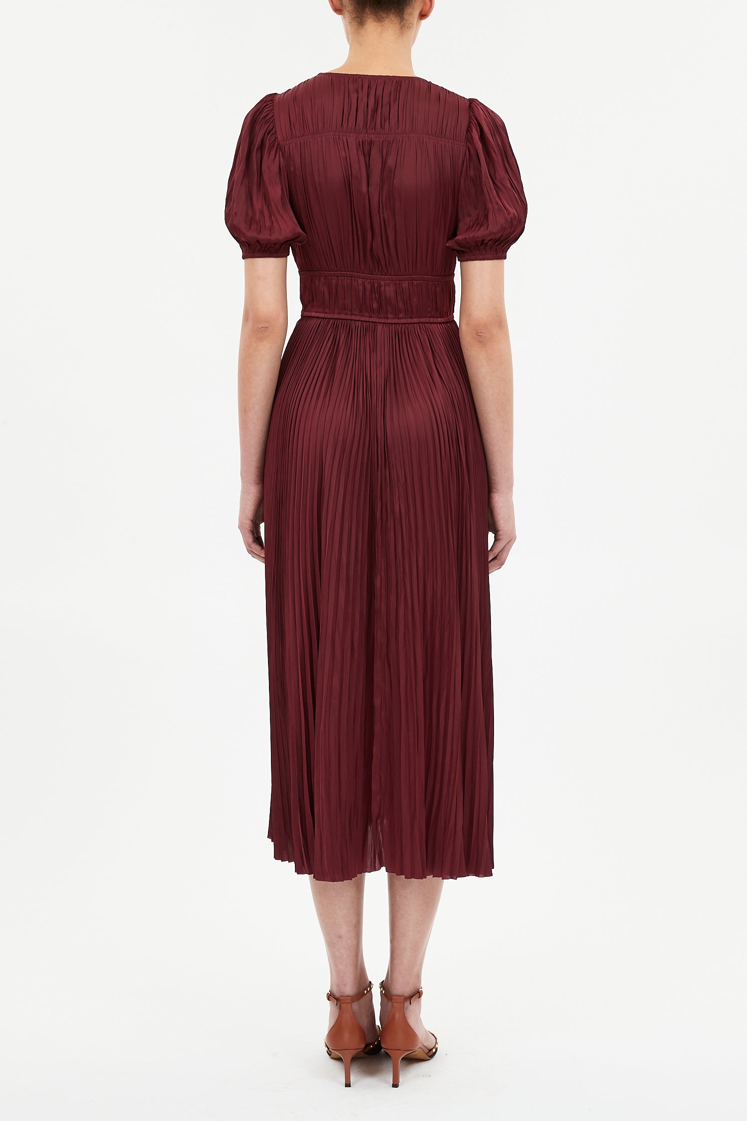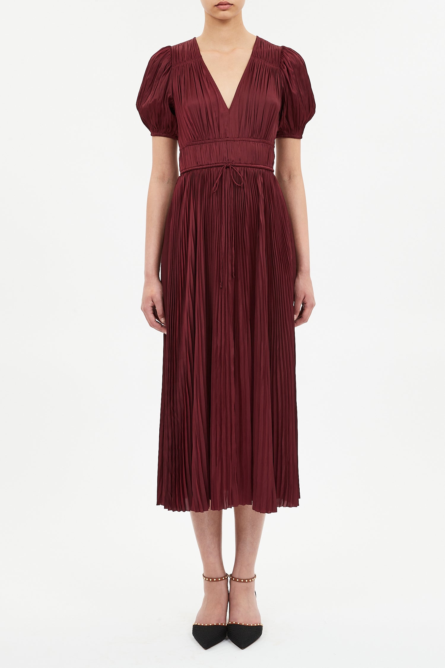 The Audra Dress is made from satin with a silken texture and subtle sheen. A signature Ulla Johnson silhouette, it is pleated throughout with gently puffed sleeves and a billowing, fluid hemline.