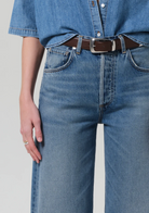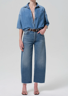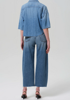 The Ayla Raw Hem Crop, inspired by a reworked vintage silhouette, features a slightly relaxed but flattering top block that transitions into a roomy leg with a raw hem finish. Perfect for warmer days, this cropped denim is crafted from 100% regenerative cotton, offering both comfort and sustainability in a timeless, versatile style. Style it effortlessly with a tucked-in blouse and sandals for a relaxed daytime look, or elevate it with a sleek heel and tailored blazer for an elevated take on casual chic.