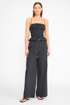 The AYLA TOP is the perfect blend of comfort and style. Made from soft cotton poplin, it features shirred details and delicate spaghetti straps for a feminine touch. The flared peplum top adds a flattering silhouette, making it a must-have addition to your wardrobe.