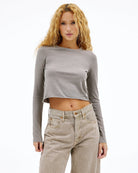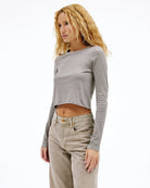 Baby Long Sleeve crafted from a unique light weight open-end fabric for an authentic vintage look and feel. Designed with a cropped length and hand finished with a raw hem detail.