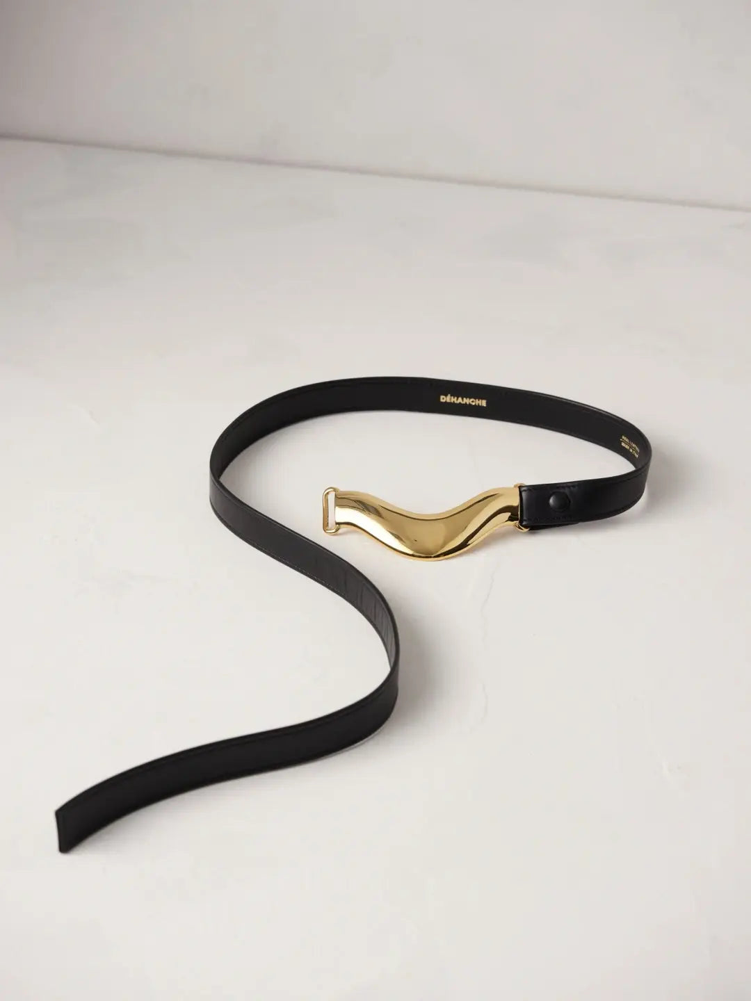 Experimental and minimalist by design, the curved buckle was inspired by the brass designs of the Romanian modernist sculptor Constantin Brâncuși. The Brancusi is for the woman with a sensibility to design, interested in making a statement and who searches for objects that impart character. The buttery soft leather allows for the belt to be worn relaxed around the hips or cinched to accent the waist.