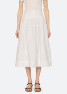 The Camden skirt features pintuck detailing, smocked waistband and midi silhouette.