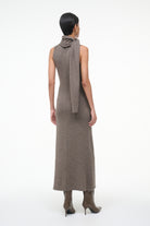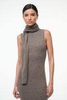 The Canal Dress is a lightweight merino wool knit, with a mock turtleneck and comes with a detachable scarf.