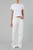 The Cool jean is a relaxed leg, low-rise jean with an adjustable drawstring toggle. The Cool has no waistband (yes, no waistband.) It features a traditional button fly, custom hardware and our signature 'SH' embroidery.