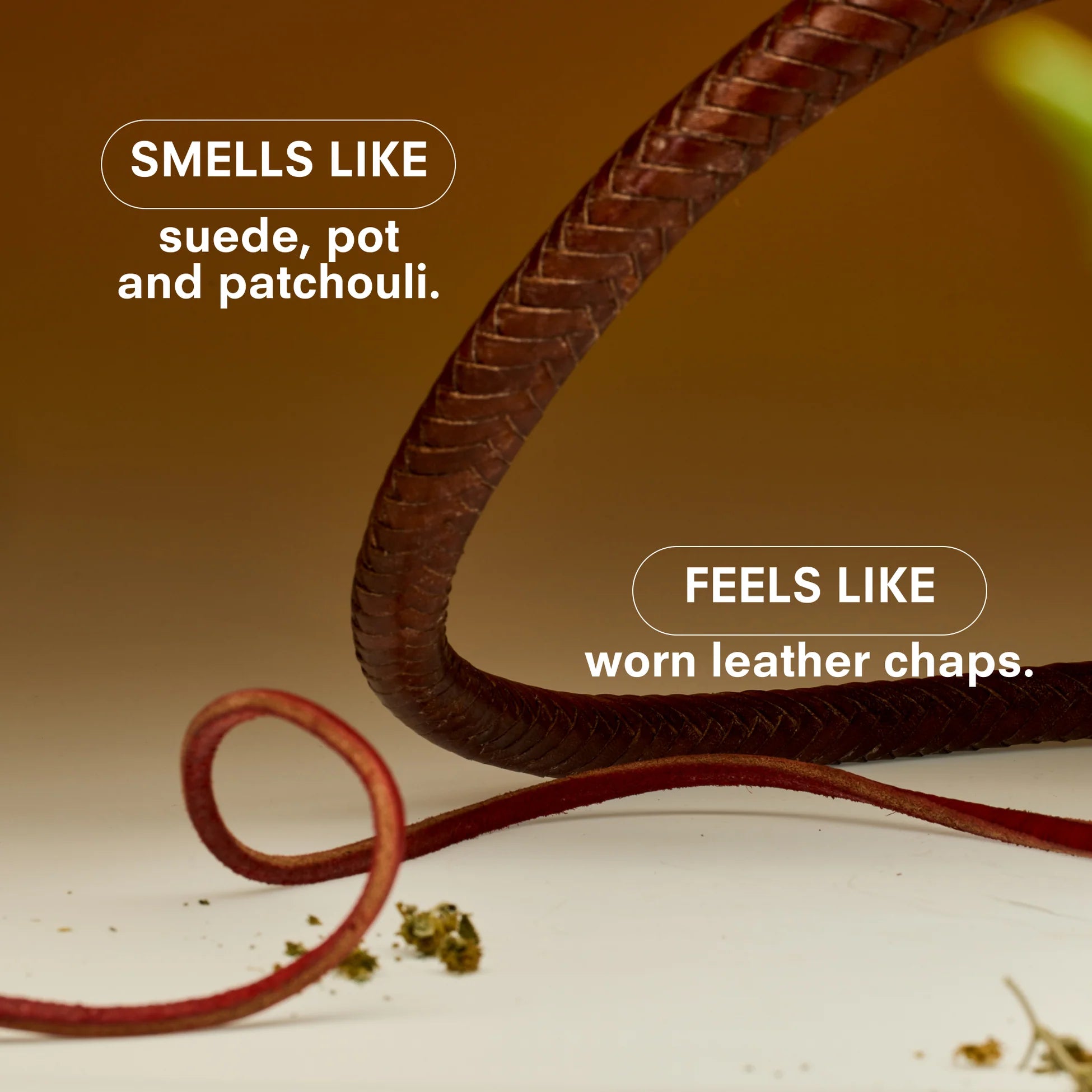 Cowboy Kush kicks off with warm hazelnut and soft white leather, matures into cannabis flower and worn suede, and then settles into smooth tonka and patchouli. Sweet, smoky and slightly wild. Think rodeo rebel meets downtown after-hours.