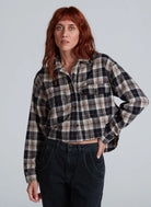 The Crosby Flannel is a relaxed, cropped button-down crafted from soft Japanese cotton shirting. Designed with chest pockets and a slightly boxy fit, it offers timeless flannel appeal with a modern silhouette. Perfect for layering or wearing on its own, it's an easy piece for everyday wear that balances comfort and style.