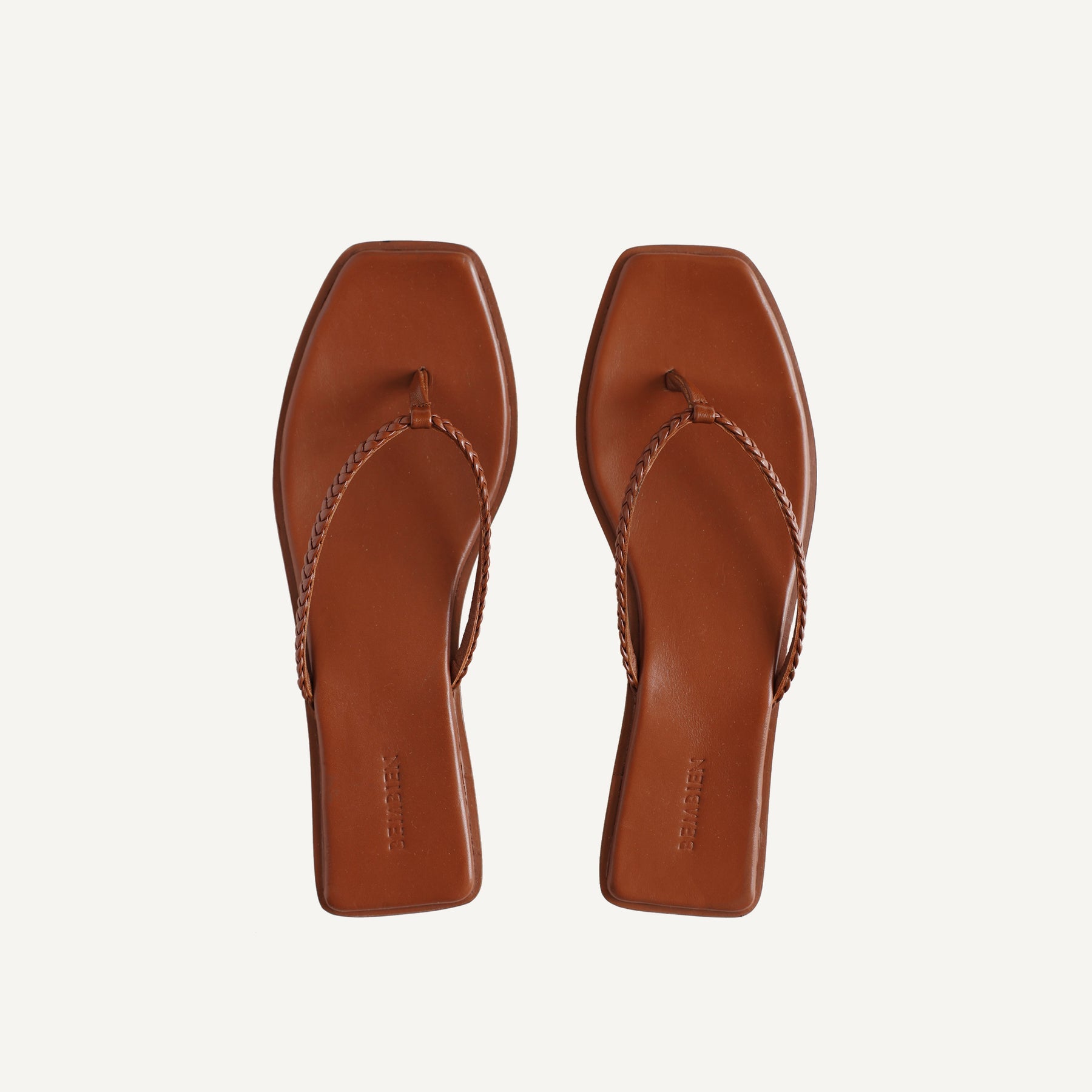 Chic leather flip flops that are comfortable to boot. The braided leather straps are smooth, flat leather on the underside. Features a low stacked heel to give you a little extra height and a padded sole for all-day comfort.