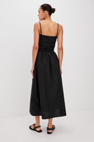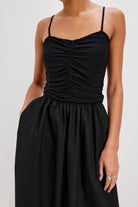 The Fisher midi dress is oh-so easy to wear, featuring a fitted jersey cotton top and cotton poplin skirt. Finishing details include a ruched bodice and pockets at the hip.