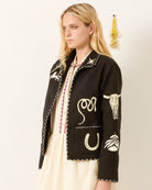Crafted from hand-loomed Khadi cotton, our embellished jacket is adorned with symbols of the American West, beaded and embroidered by hand. Tailored for a close fit, it's finished with a cotton-silk lining and cross-stitched edges.