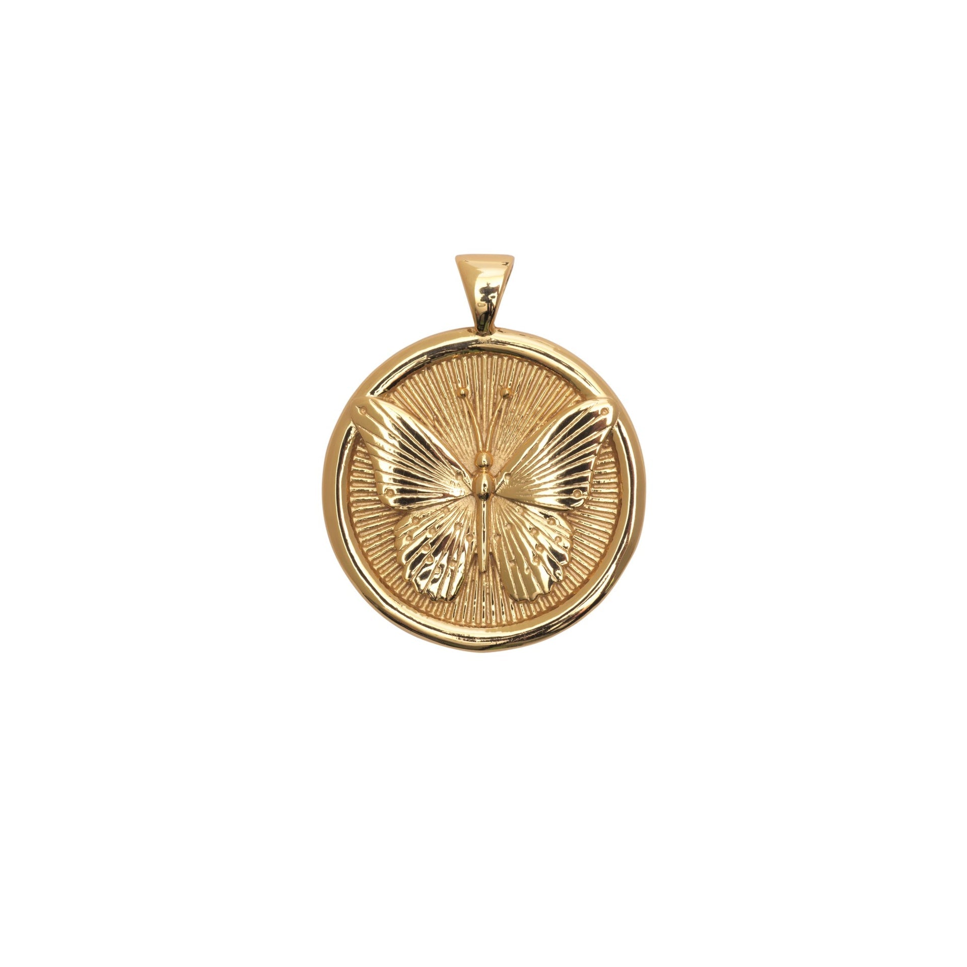 Coin pendant made of sterling silver dipped in 14k gold, measuring 0.975" in diameter.