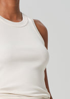 The Isabel Tank is a modern essential, cut in ultra-soft, supportive ribbed cotton with a close, flattering fit. Designed with a high neckline and clean finish, it’s ideal worn solo or layered under structured pieces. A polished base for elevated everyday styling.