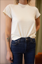A Clairvaux exclusive! The perfect addition into any closet, this cotton crew tee is a true classic. This boyish tee features a crew neck and slim short sleeves. The fabric is a lightweight, perfect for layering.